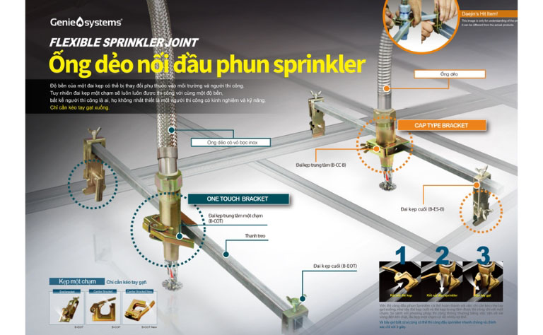 Nhờ vào sự linh hoạt và tính năng chống cháy nổ, ống mềm nối đầu phun Sprinkler Daejin đảm bảo an toàn tối đa trong việc vận hành hệ thống PCCC.