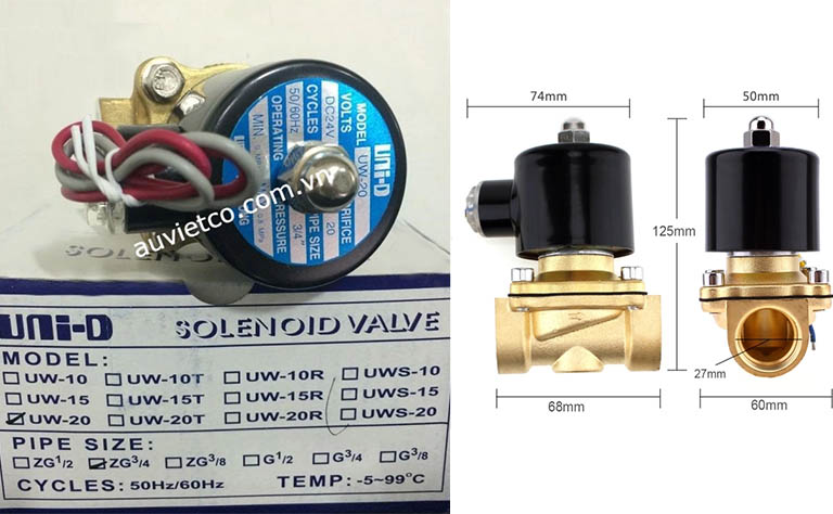 Van điện từ nước thường đóng phi 27 UniD còn gọi là DN20 hay ¾’’. Đây là dòng van sử dụng cho hệ thống đ