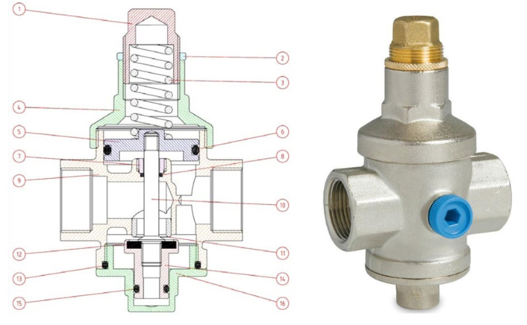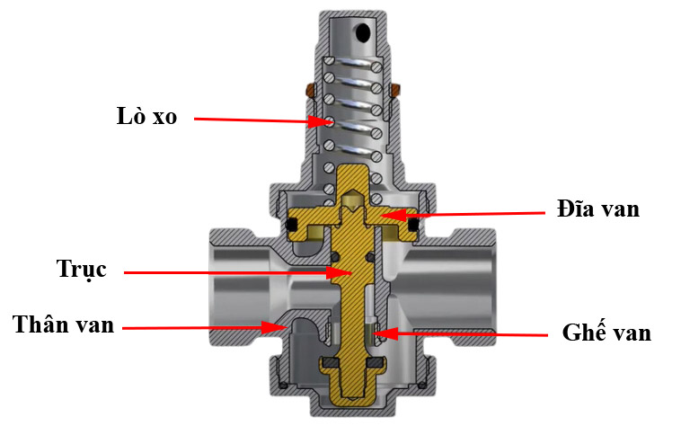 Cấu tạo van điều áp Farg bao gồm các bộ phận chính như: